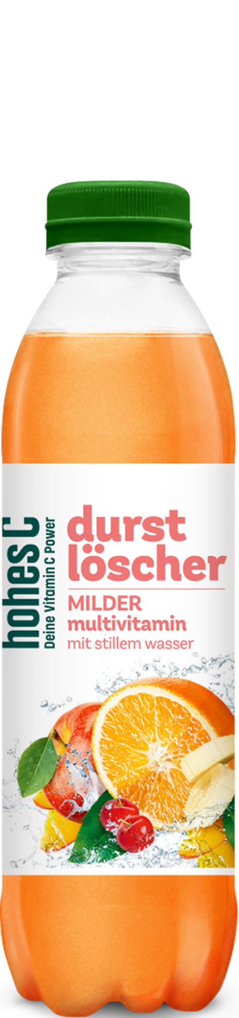 Fruchtige Erfrischung für jede Gelegenheit! Für alle, die sich eine Erfrischung wünschen, die mild und gut verträglich ist. Unser milder Multivitamin enthält nur Früchte, die von Natur aus säurearm sind. In Kombination mit natürlichem, stillem Wasser löscht er den Durst, bleibt dabei gut verträglich und schmeckt obendrein köstlich. Nebenbei deckt bereits eine Flasche hohes C Durstlöscher Milder Multivitamin den Tagesbedarf an Vitamin C und 9 weiteren Vitaminen.